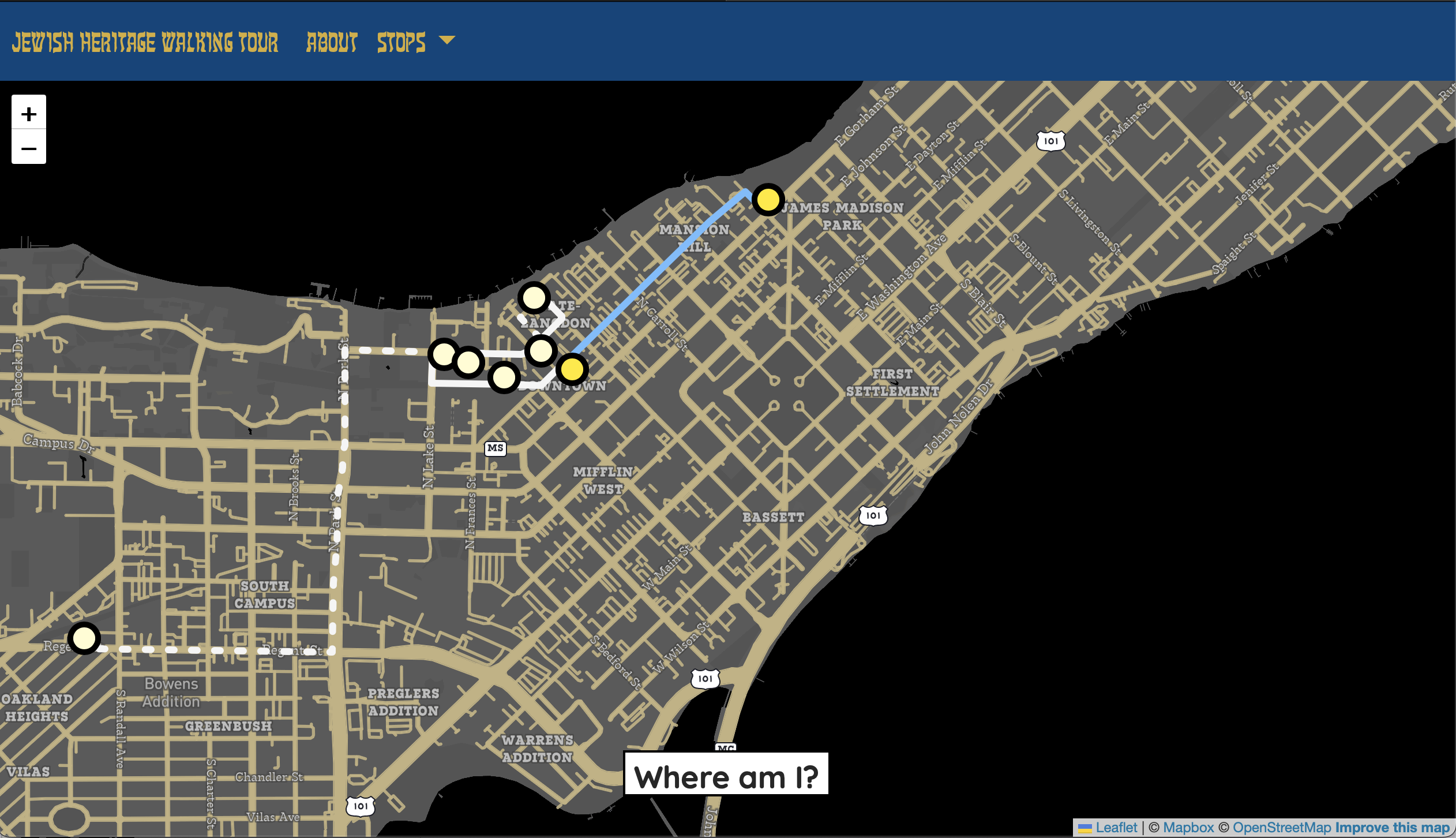 This walking tour combines geographic precision with engaging storytelling personal to me, allowing users to navigate the tour virtually or use it as a companion for an in-person visit. Each location features detailed descriptions that contextualize its significance within Madison's broader Jewish history and community, emphasizing themes of togetherness, resilience, and cultural preservation.